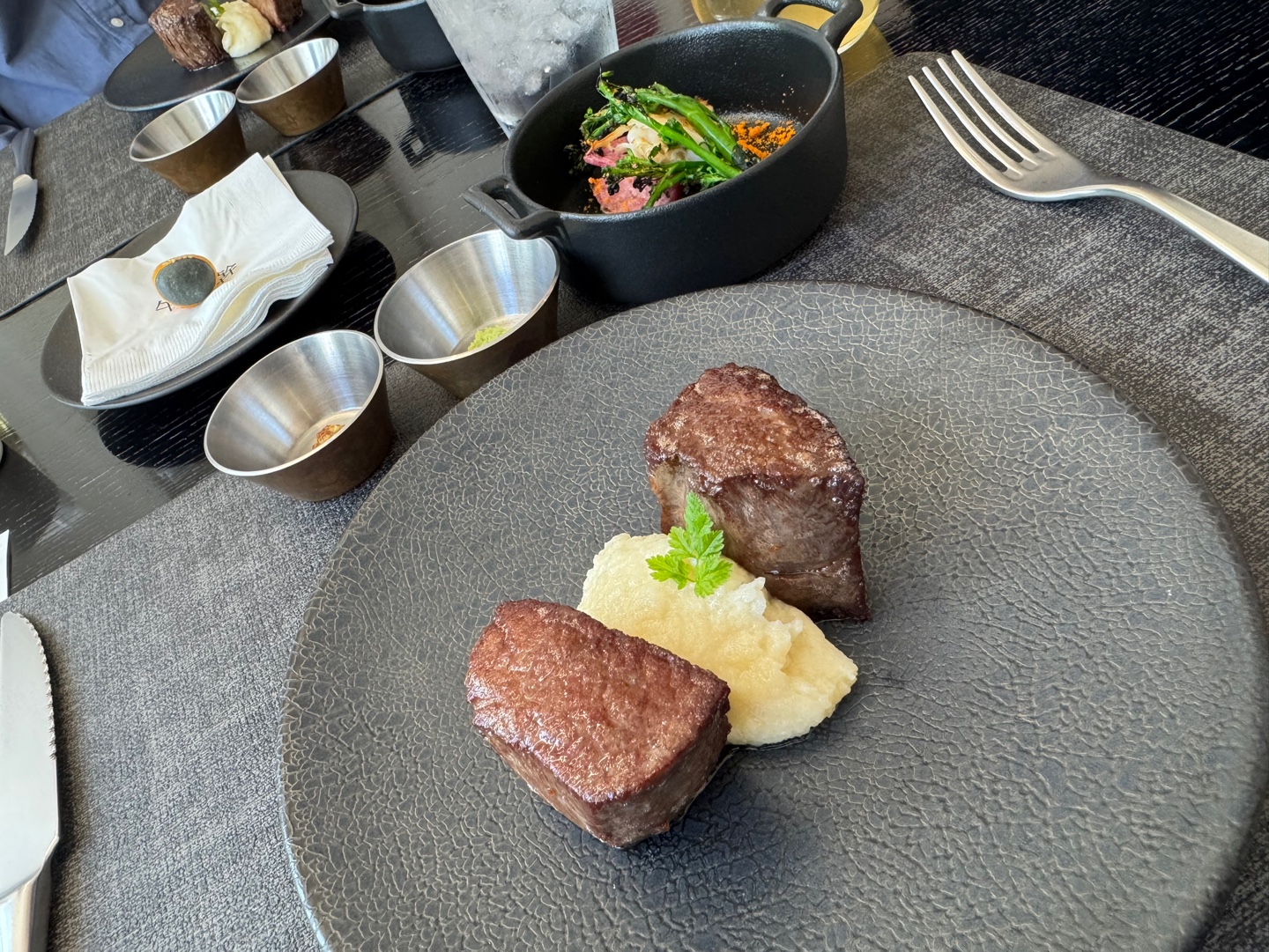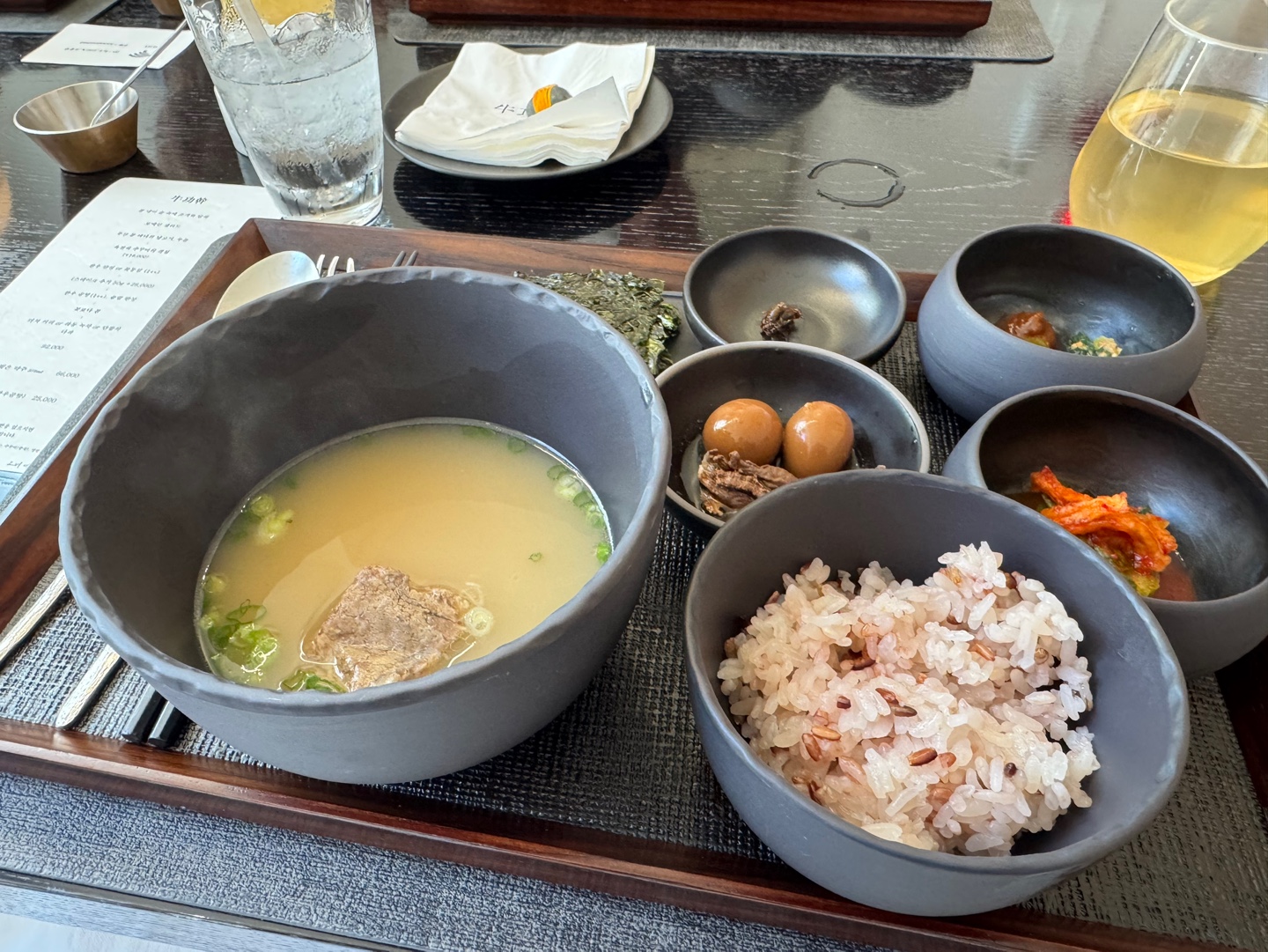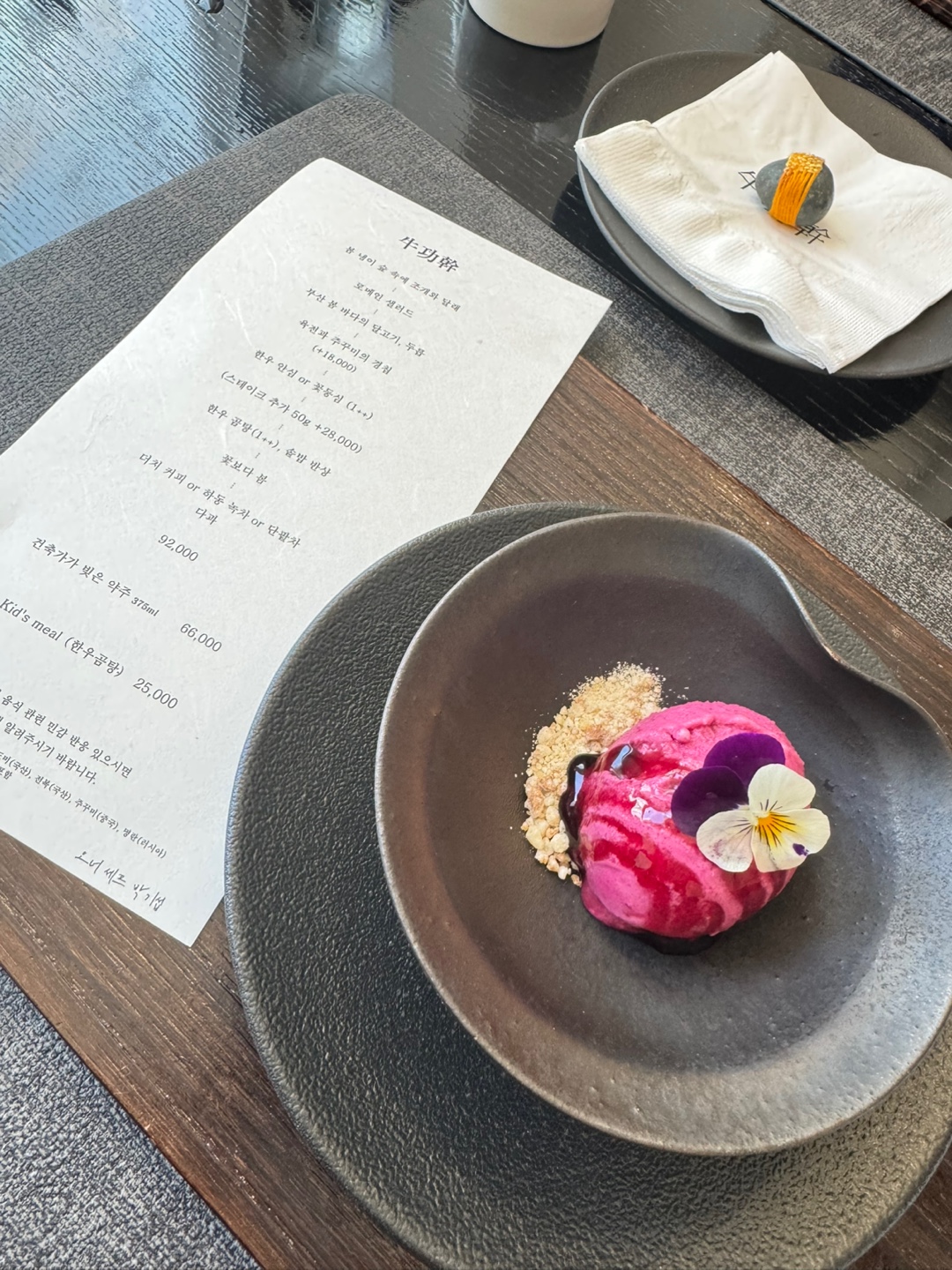 모든 메뉴가 눈으로 보는 재미도 있었고, 맛은 말할 것도 없이 최고였습니다. 메인은 1++ 꽃등심 한우인데, 입에서 살살 녹고 익힘 정도도 완벽했습니다. 나중에 집에 와서도 계속 생각날 정도였습니다. 직접 끓인 한우곰탕도 국물이 진하고 고소해서 배가 부름에도 불구하고 한 그릇 뚝딱했습니다. 함께 나온 구운 김, 젓갈과 반찬들도 직접 다 만드셨다고 했는데, 곰탕과 함께 먹기 너무 좋았습니다. '꽃보다 봄'이라는 이름에 걸맞게 아름다운 디저트까지 완벽한 식사였습니다.